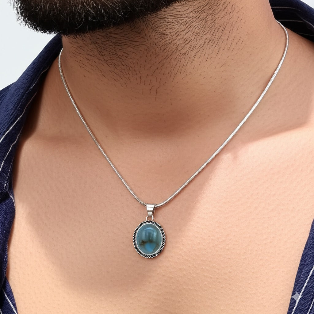 An aquamarine men’s pendant showcases a stunning blue aquamarine gemstone, symbolizing tranquility and strength. Set in a bold and stylish design, it offers a refined yet powerful look. Perfect for everyday wear or special occasions, this ring adds a touch of sophistication and elegance.