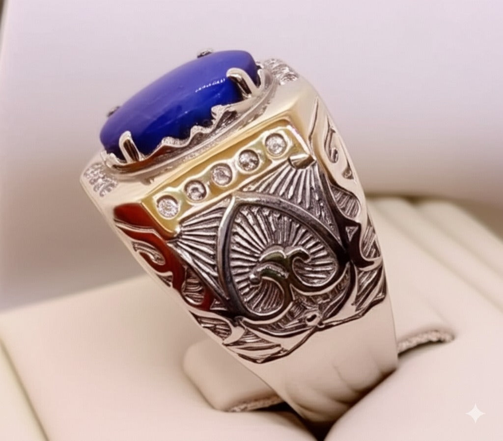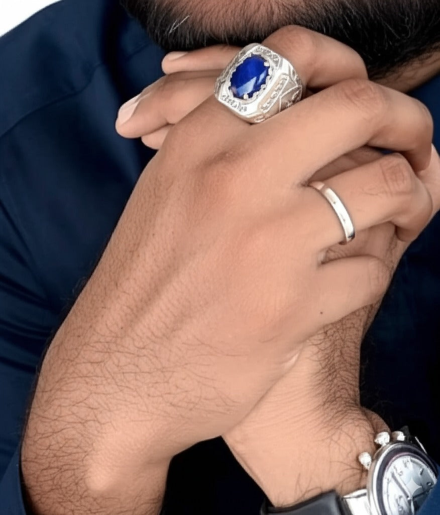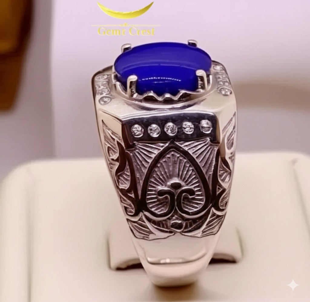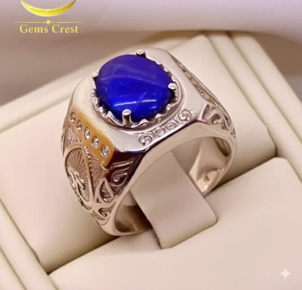 Expertly crafted with a 10 g silver band, this Kashmir blue sapphire ring exudes elegance and sophistication. The deep blue hue of the gemstone is sure to make a statement, while the sturdy yet delicate design ensures lasting wear. A timeless addition to any collection.