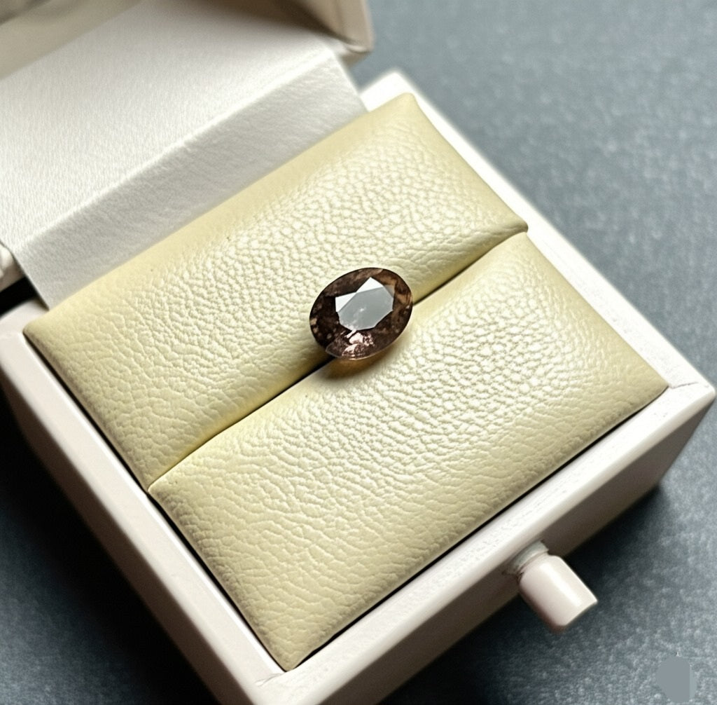 This 6.40ct champagne-colored zircon is a natural gemstone from Africa that showcases a shimmering champagne-colored sparkle when illuminated. Its rare and stunning appearance makes it a coveted gemstone for collectors. Enhance your collection with this magnificent gem today.