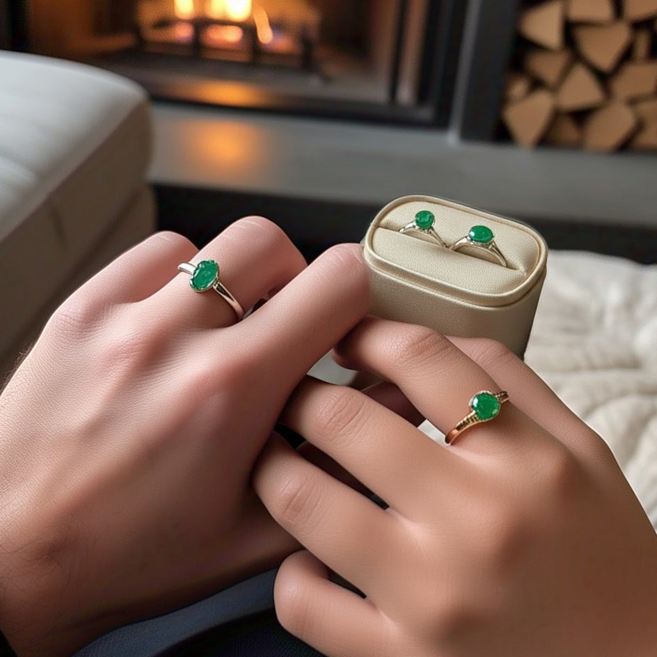 Emerald rings for couple
