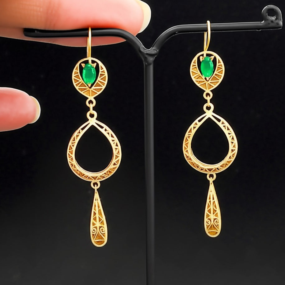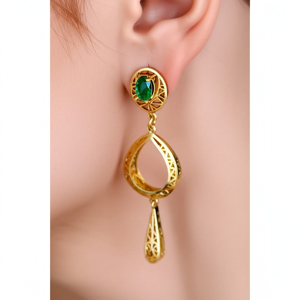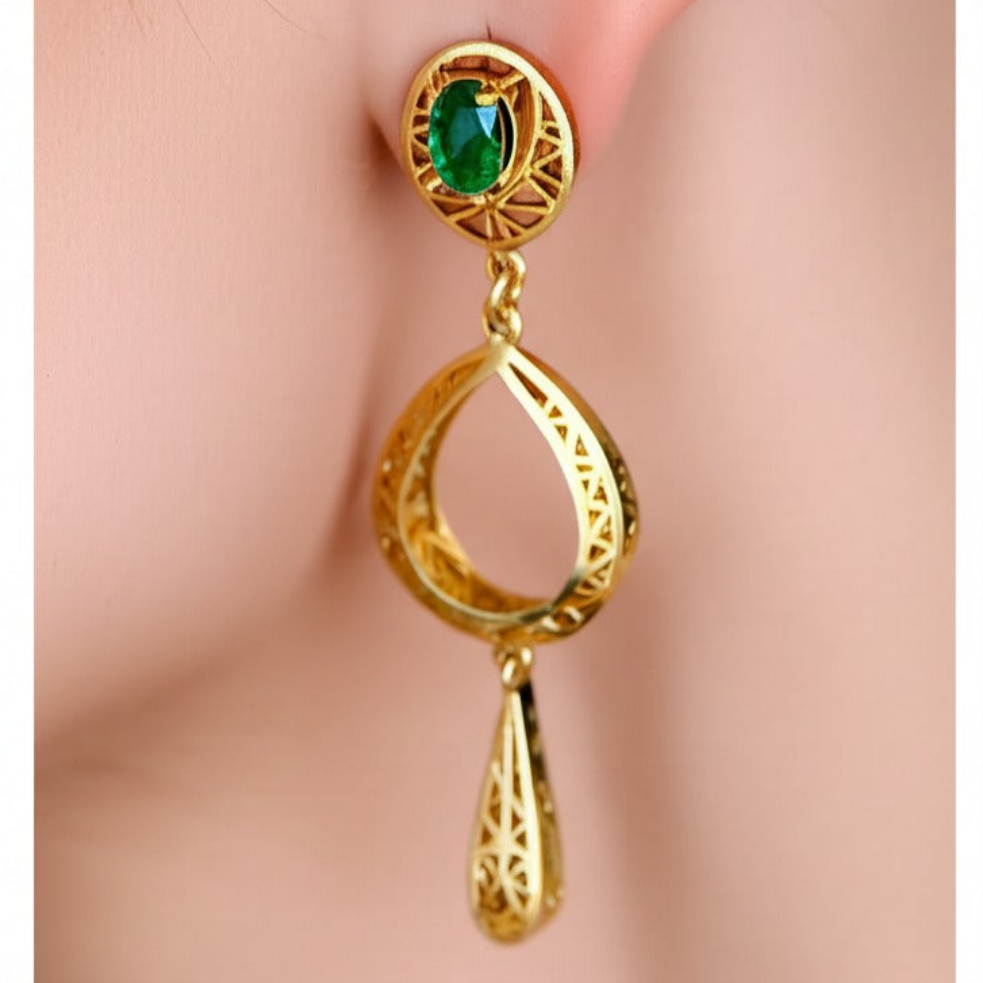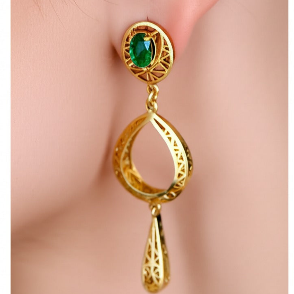 Exude elegance with these stunning emerald women’s luxury earrings, crafted in high-quality gold. Featuring vibrant, natural emeralds set in a sophisticated design, these earrings blend timeless beauty with modern luxury—perfect for upscale occasions or refined everyday wear.