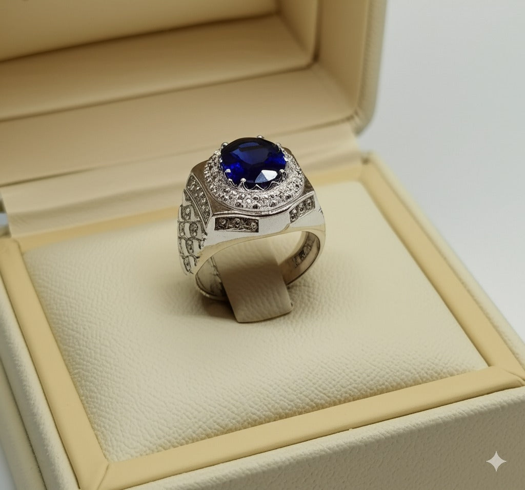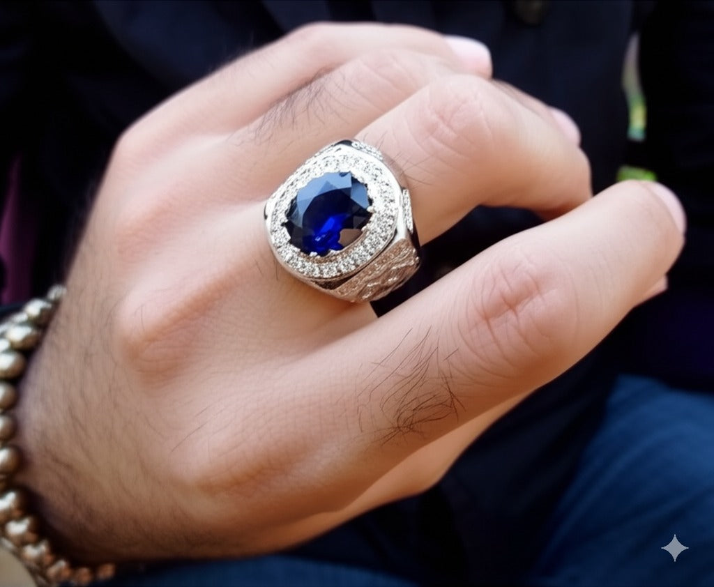 Expertly crafted for the sophisticated gentleman, this men blue sapphire ring boasts timeless elegance and masculine style. Made with the finest blue sapphire, it exudes strength and confidence. Elevate your look and make a statement with this luxurious accessory.