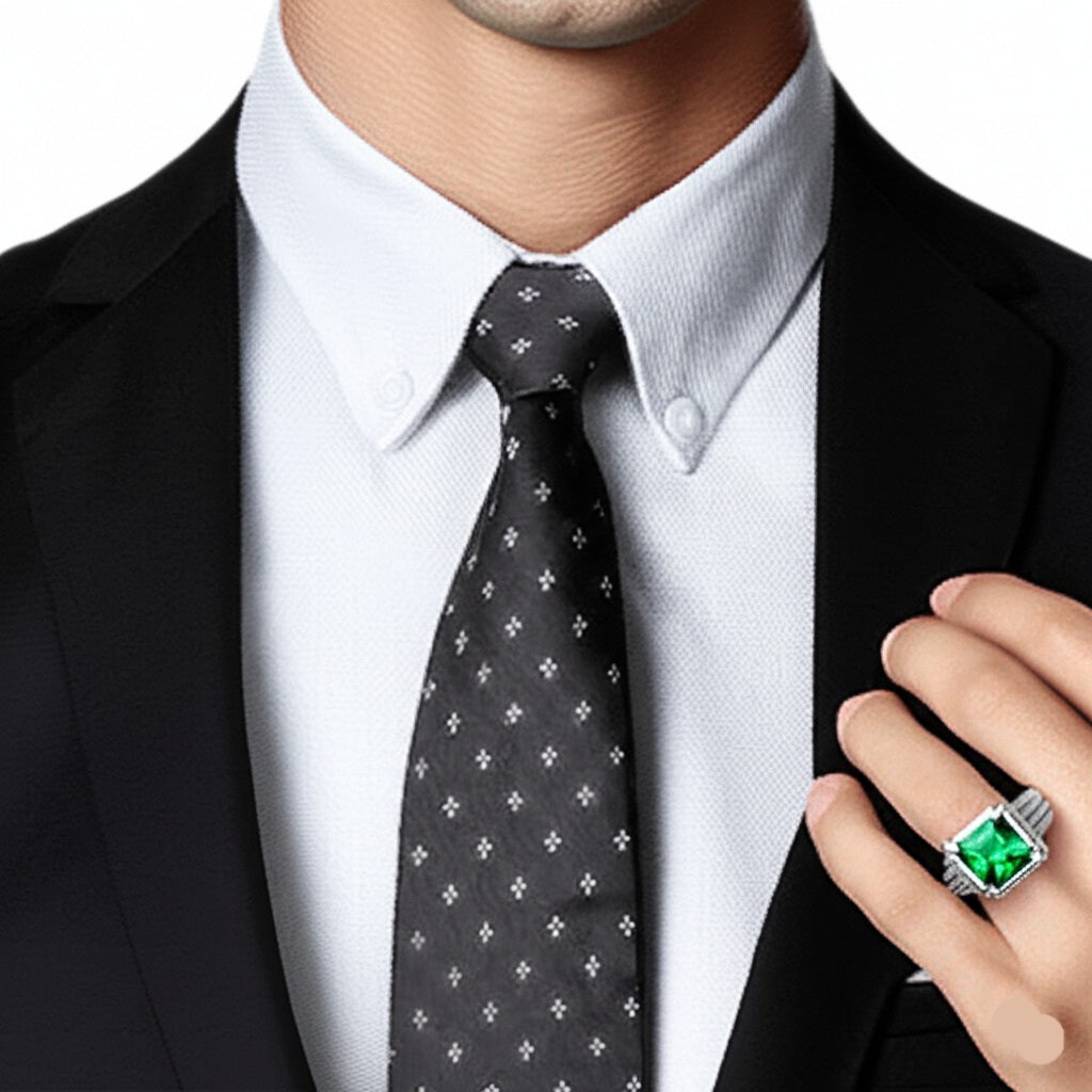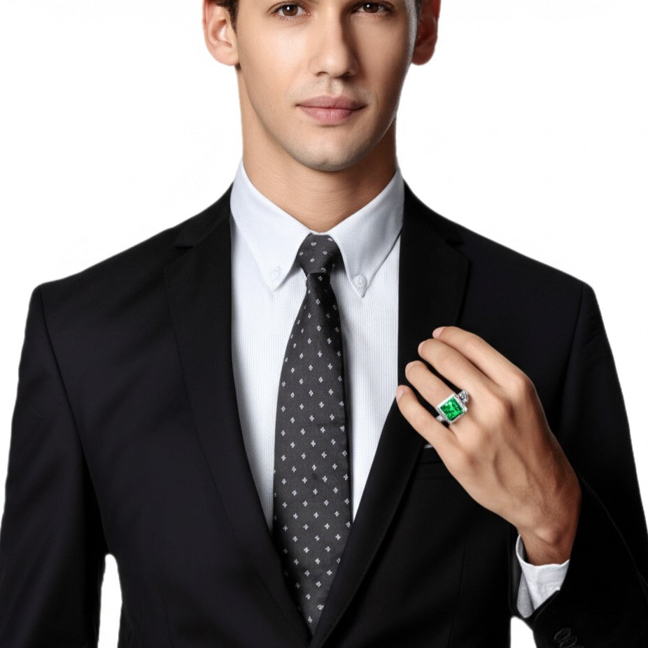 Men’s luxury white gold emerald ring