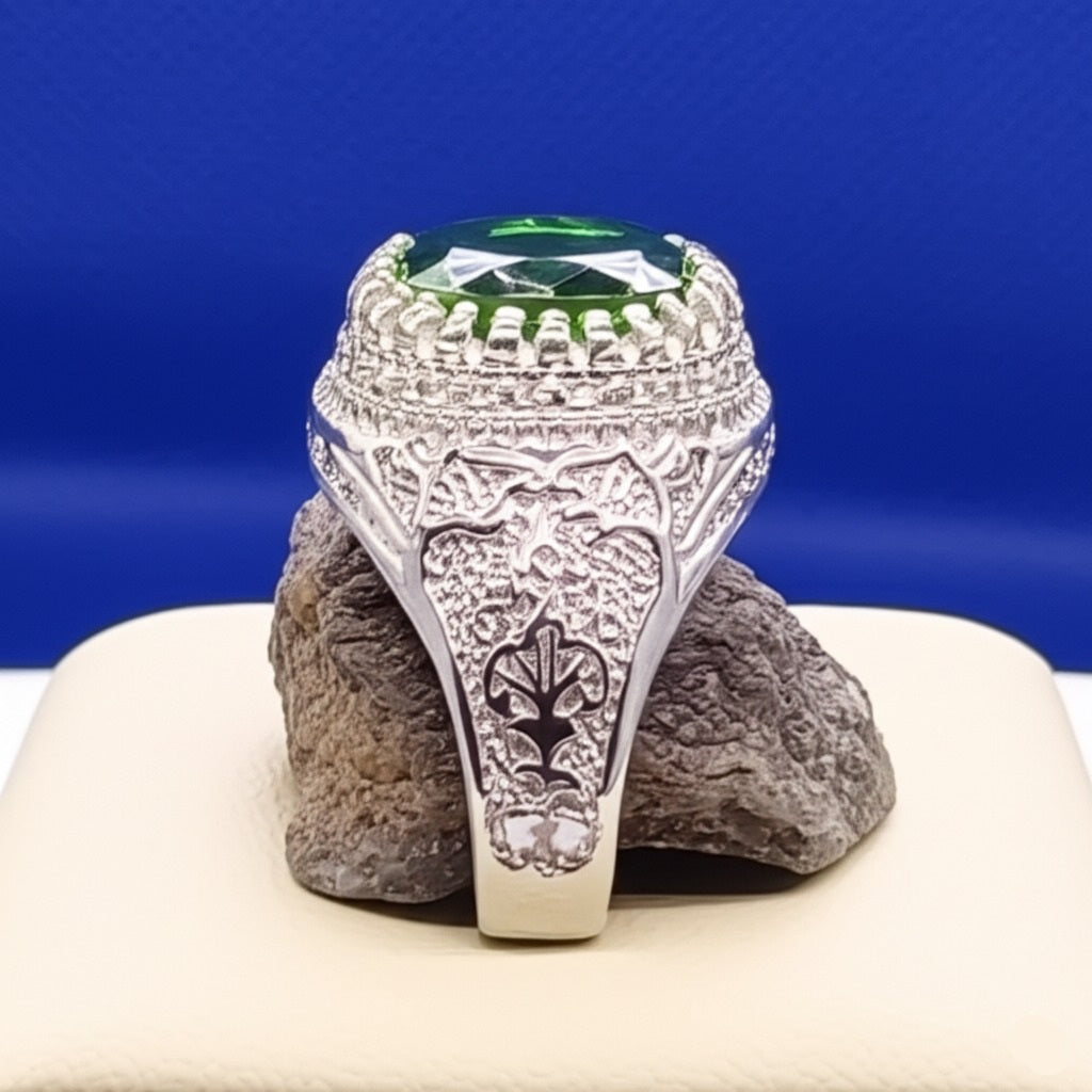 This elegant peridot ring, weighing 11 grams, is a must-have for any man’s jewelry collection. Boasting a stunning peridot stone, this ring adds a touch of sophistication to any outfit, making it perfect for formal occasions or everyday wear. Enhance your style with this timeless and versatile piece.