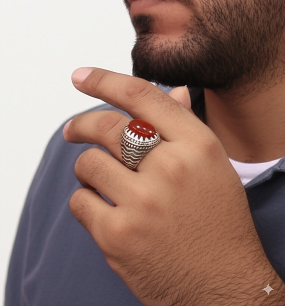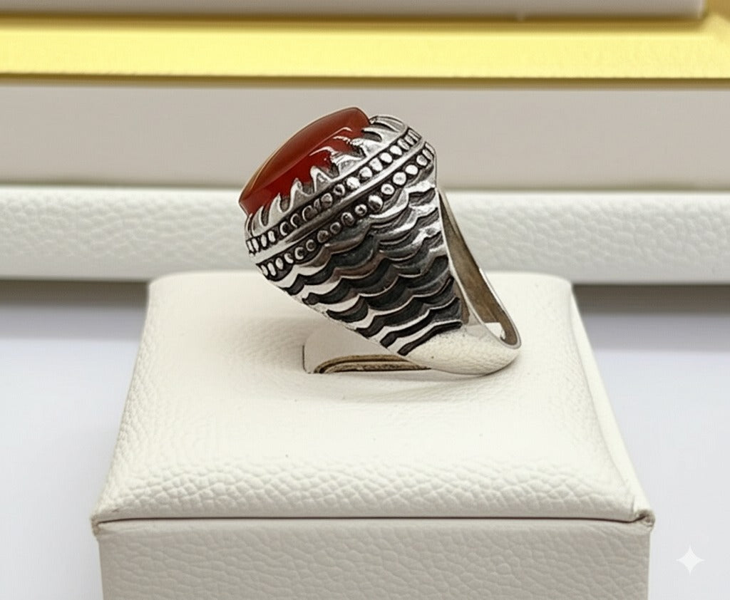 This exquisite yameni agate ring for men is sure to make a statement. Crafted with stunning detail and precision, this ring showcases the unique beauty of agate. Perfect for any occasion, elevate your style with this one-of-a-kind