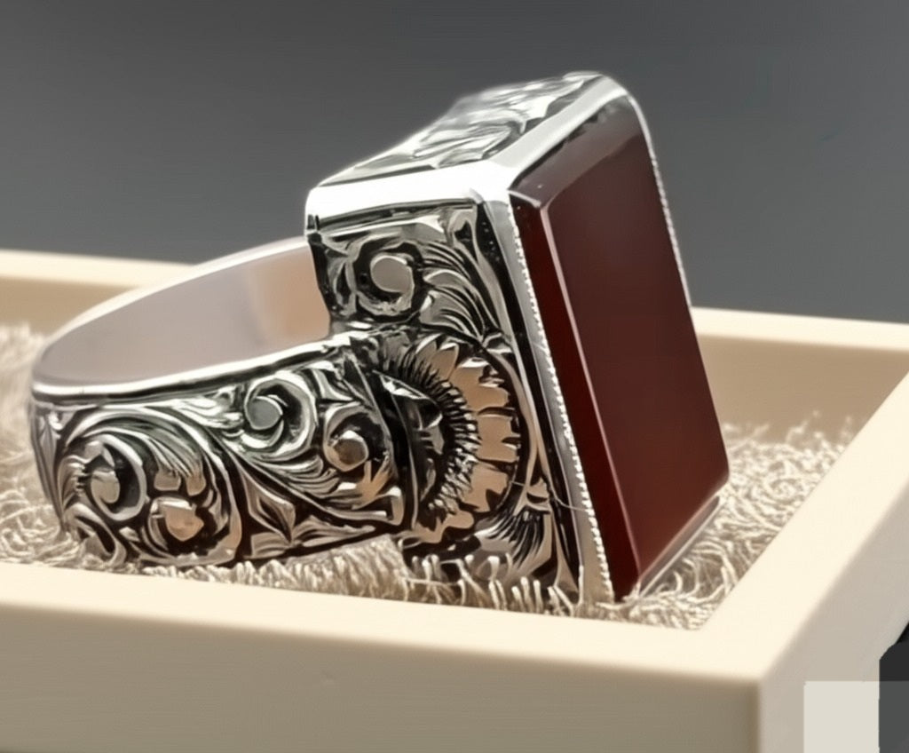 This men’s agate ring features a stunning stone sourced from yamen. The agate is known for its deep brown hue and superior quality, making it a timeless and elegant accessory for any occasion. Crafted with precision and expertise, this ring is a must-have for any man’s jewelry collection