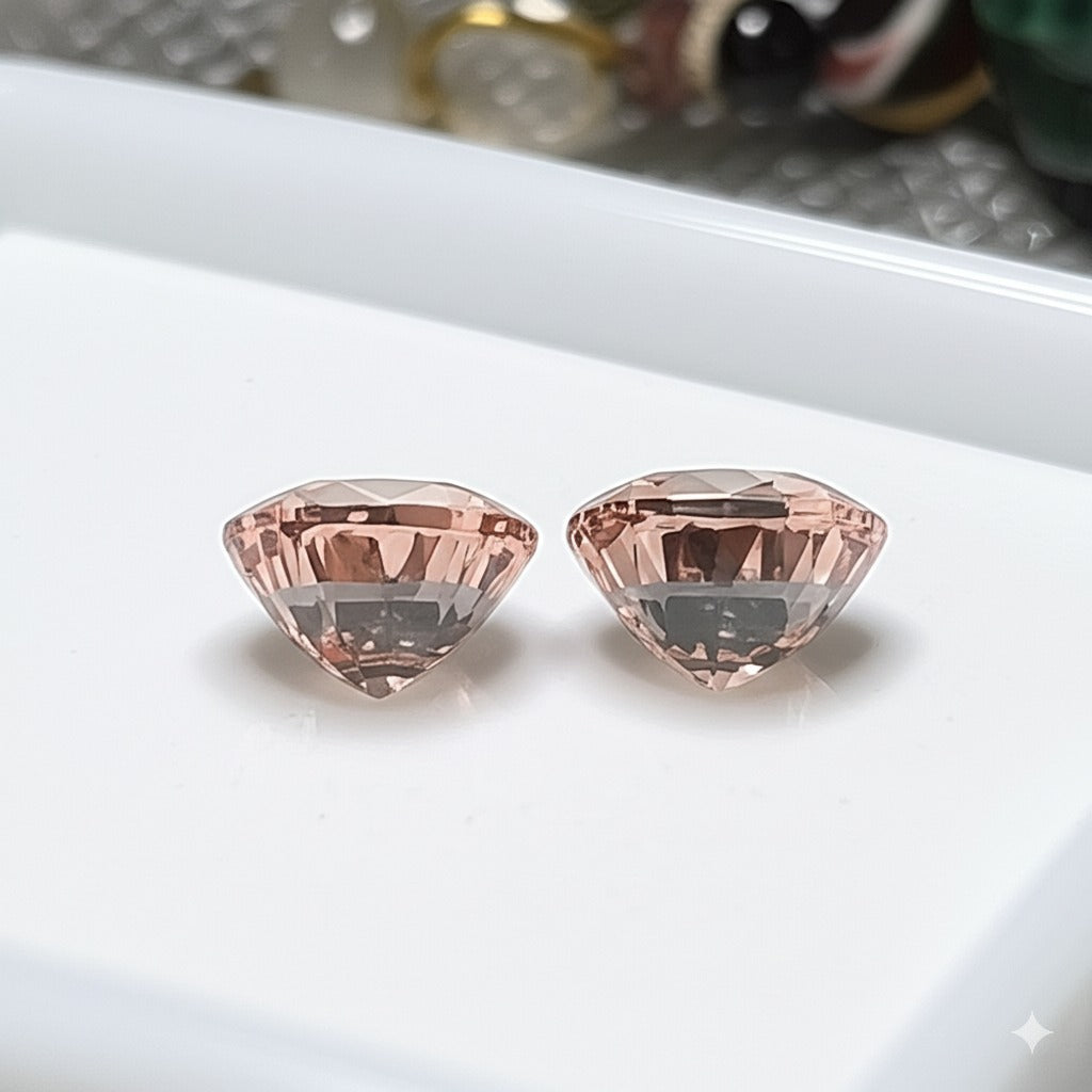 Morganite is a pink to peach-colored variety of beryl, valued for its brilliance and durability. It is commonly cut into oval, emerald, or cushion shapes to enhance its clarity and sparkle. Morganite is popular in jewelry, especially engagement rings, due to its soft, romantic hue and excellent transparency. It pairs well with rose gold settings, enhancing its warm tones.