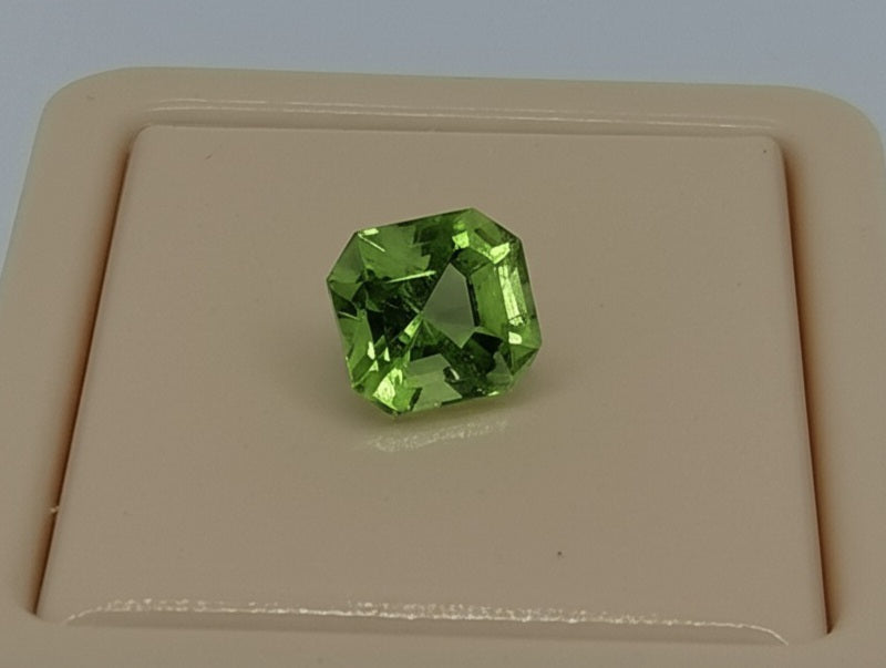 Discover the exquisite and distinctive charm of our Pakistani Peridot (3.40ct). This uncommon gemstone showcases a lively parrot green color that will elevate any accessory. Immerse yourself in the alluring beauty of this coveted gemstone.