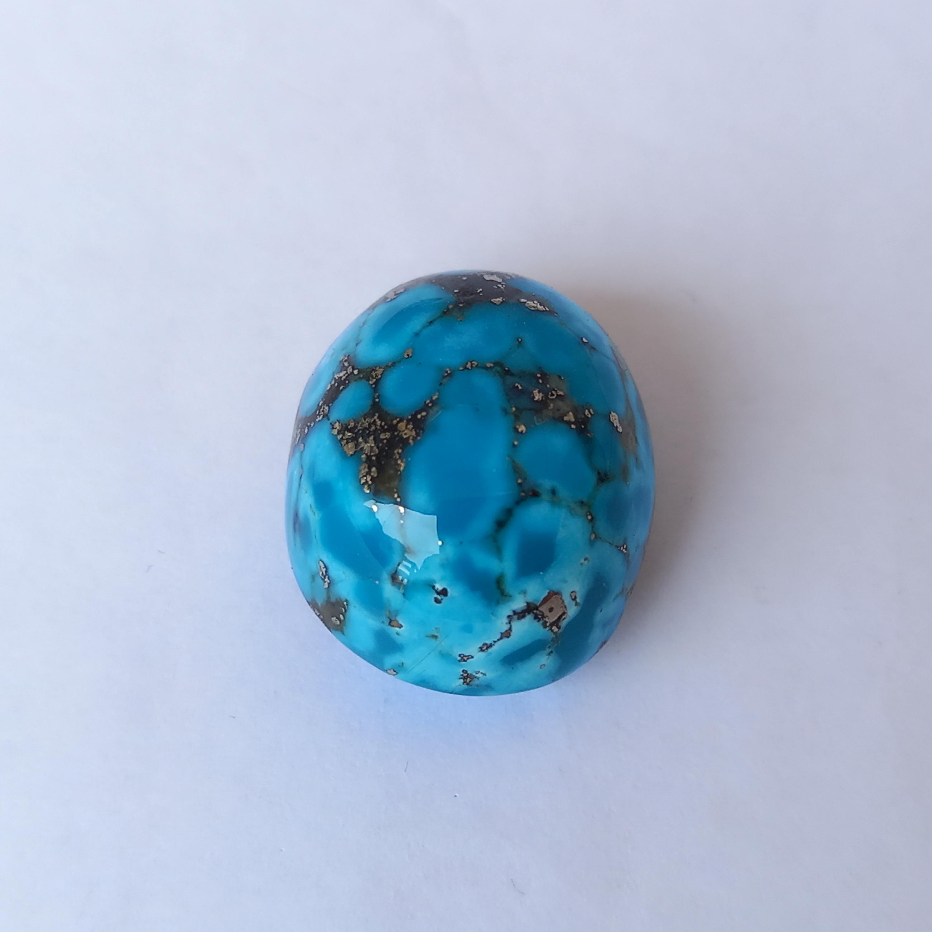 This 37.10ct Persian Turquoise is a stunning piece of cyan blue turquoise with pyrite, also known as shajri feroza in Urdu/Hindi. Its beautiful color and natural pyrite inclusions make it a unique addition to any jewelry collection. Own a piece of history and beauty with Persian Turquoise. This rare gemstone has a storied past and makes for an impressive addition to any collection. Explore it’s natural beauty, crafted over centuries, and add a touch of luxury to your wardrobe.