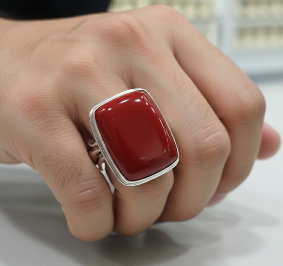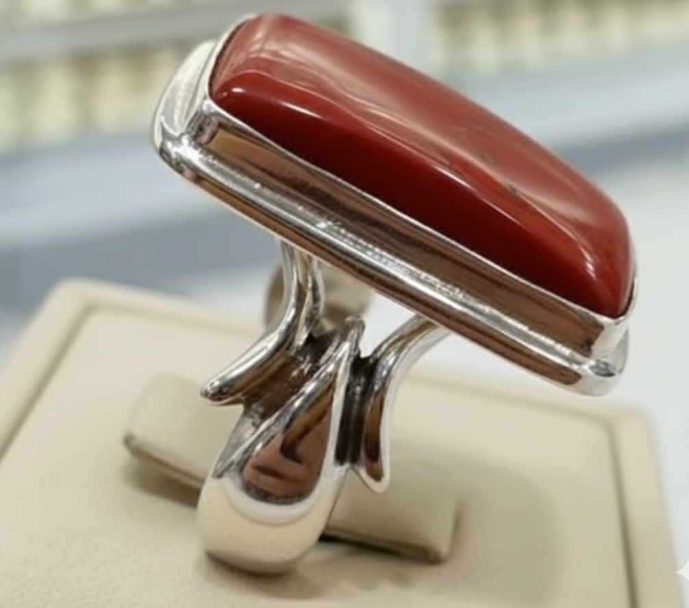 This men’s red Jasper ring features a stunning stone sourced from yamen. The Jasper is known for its deep red hue and superior quality, making it a timeless and elegant accessory for any occasion. Crafted with precision and expertise, this ring is a must-have for any man’s jewelry collection