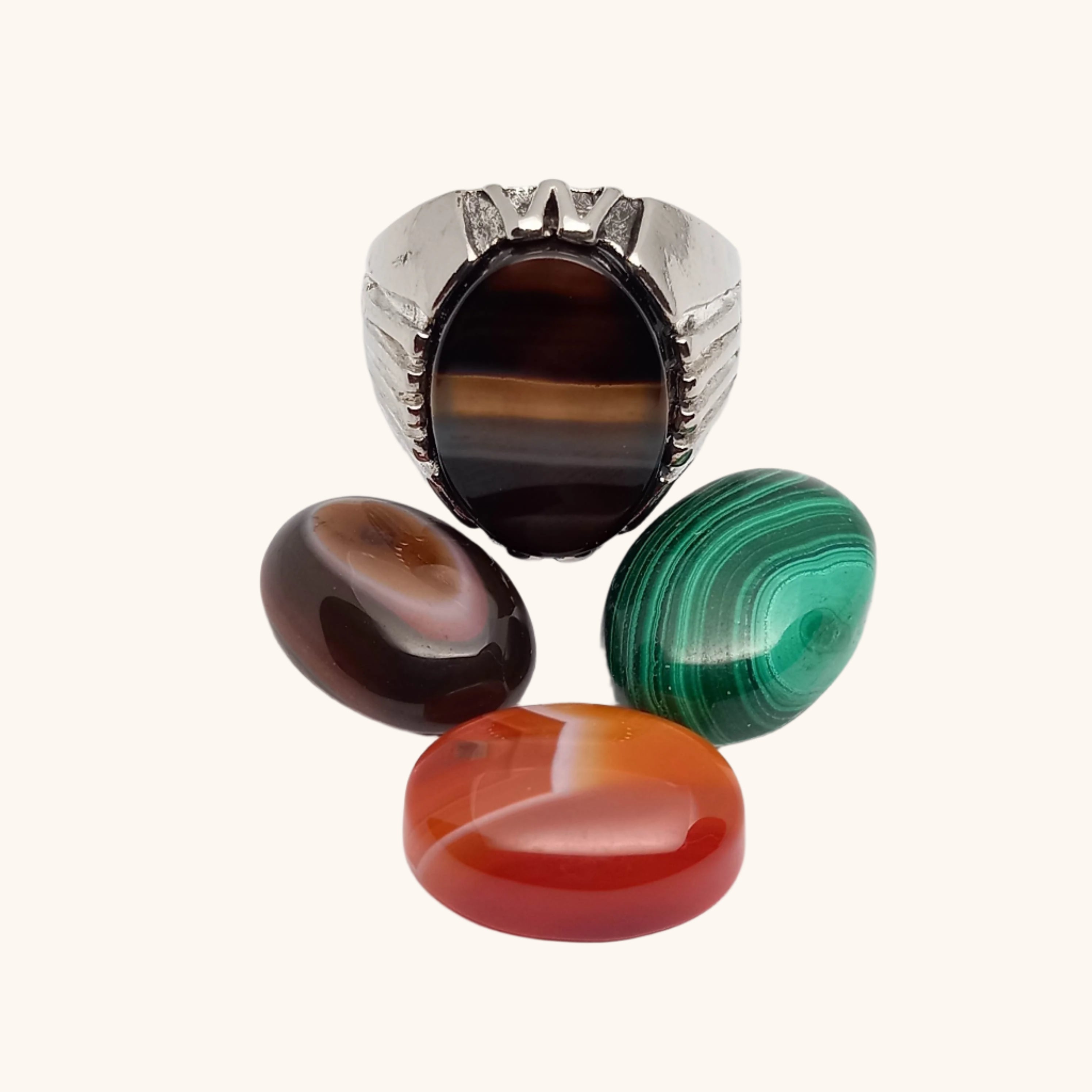 Same Ring available in Two different kinds of Sulemani agate and Malachite as shown in image