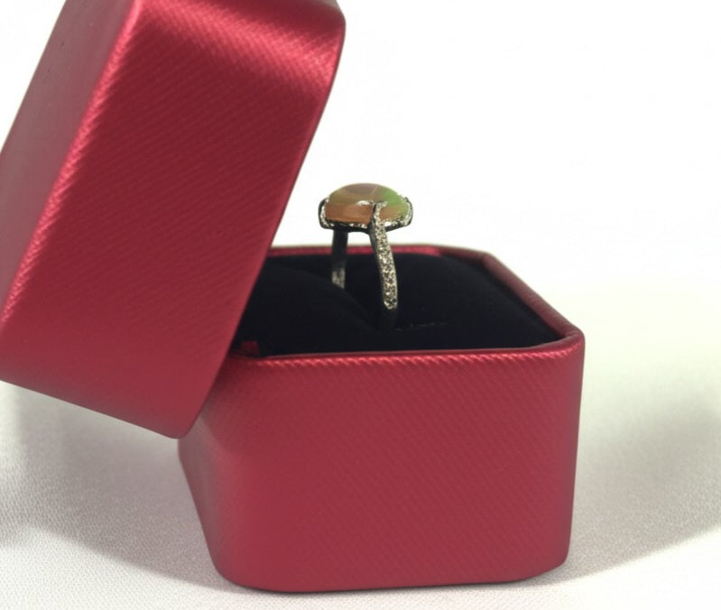 This stunning ladies white opal ring is the perfect statement piece for any occasion. With a size of 16, it is both elegant and versatile. The white opal adds a touch of sophistication and luxury, making it the perfect addition to any jewelry collection.