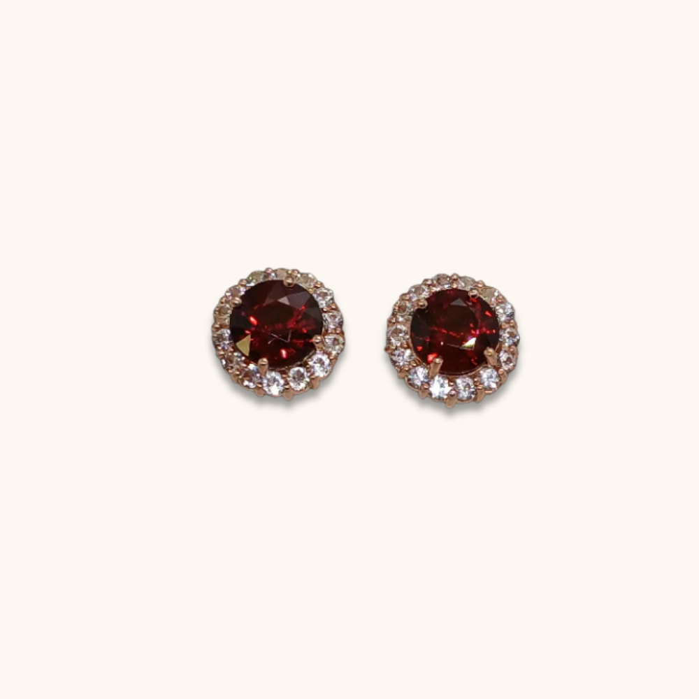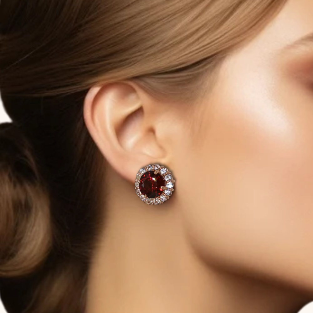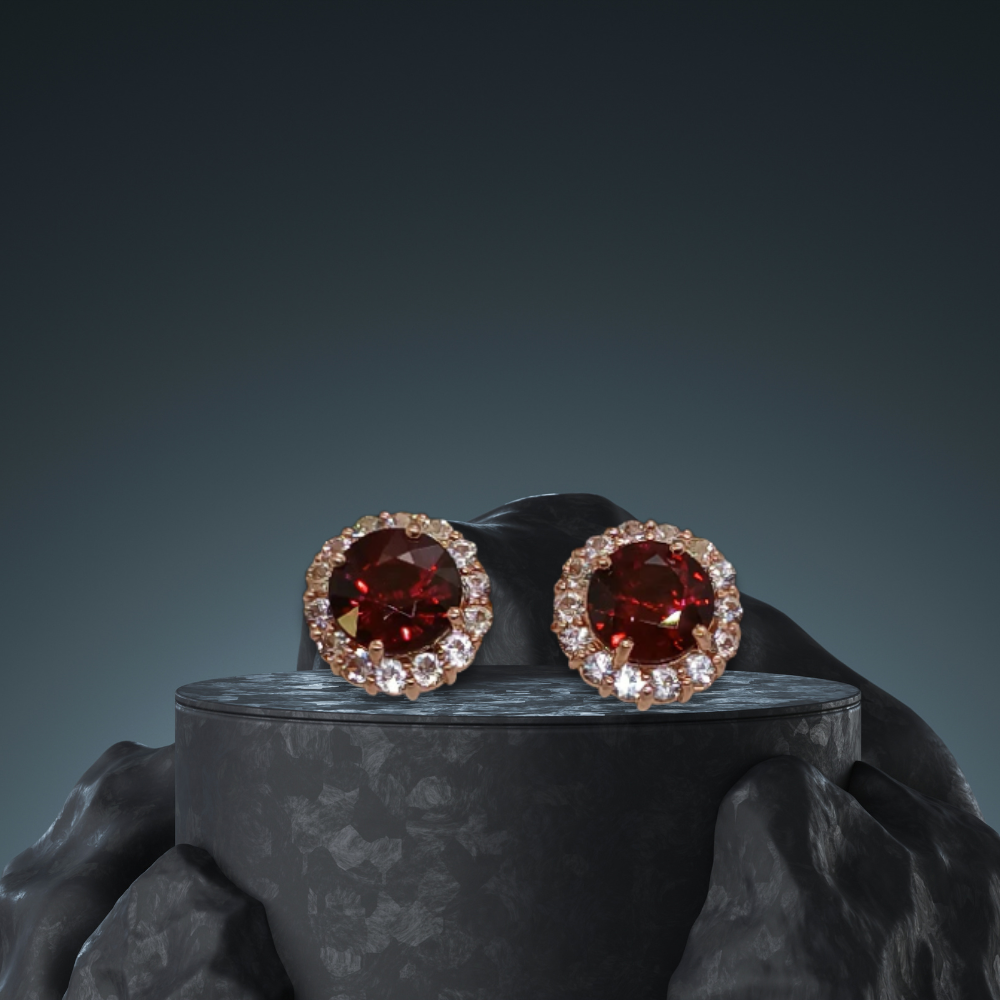 Women’s ear tops earrings featuring red garnet combine with sapphire,vibrant red hues. These earrings offer a stylish and elegant look, often set in silver or gold, making them perfect for both casual and formal wear.