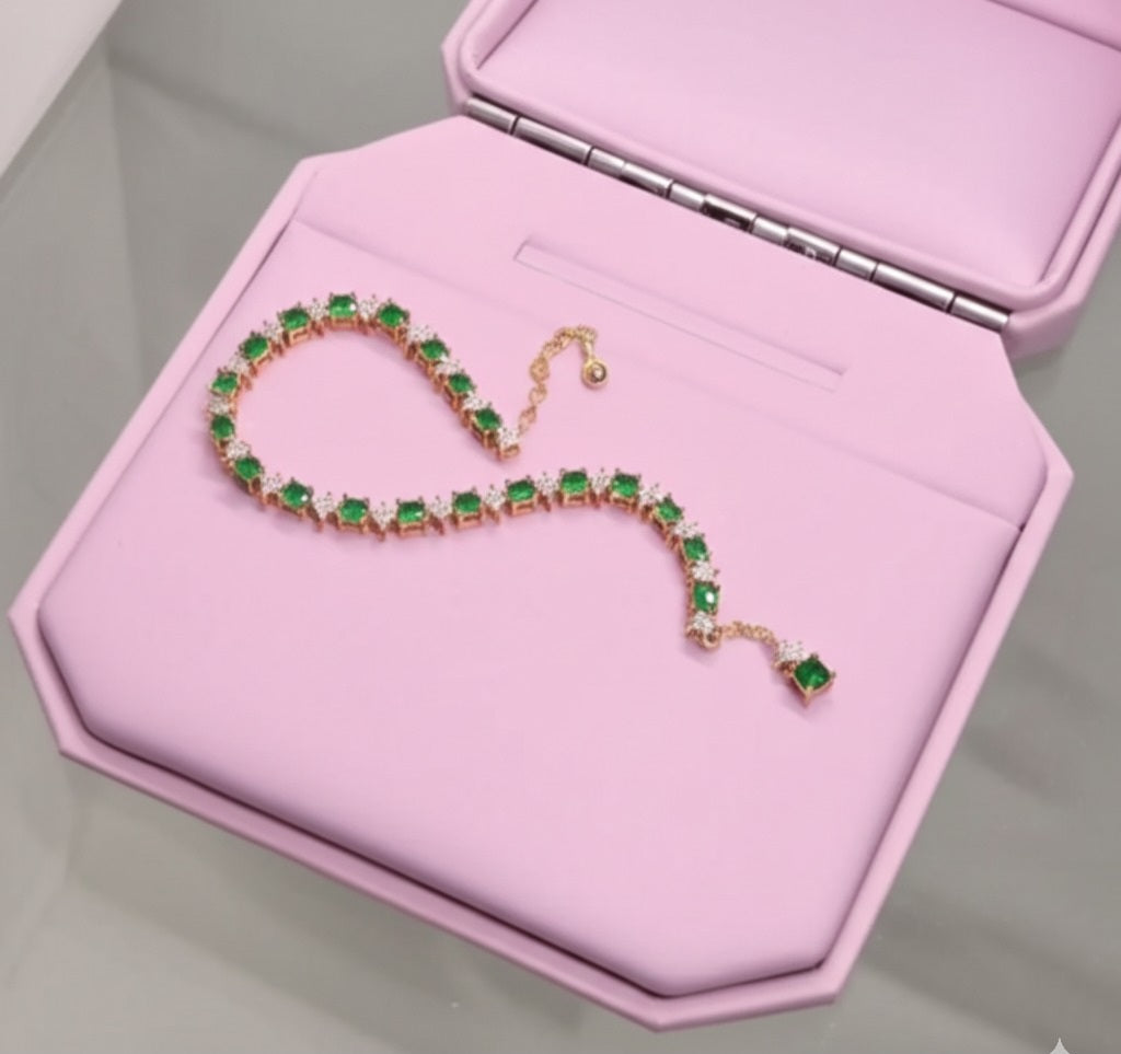 Sophisticated and radiant, this women’s emerald and diamond bracelet showcases lustrous emeralds paired with sparkling diamonds, set in luxurious gold. A timeless piece that adds elegance and charm to any occasion.