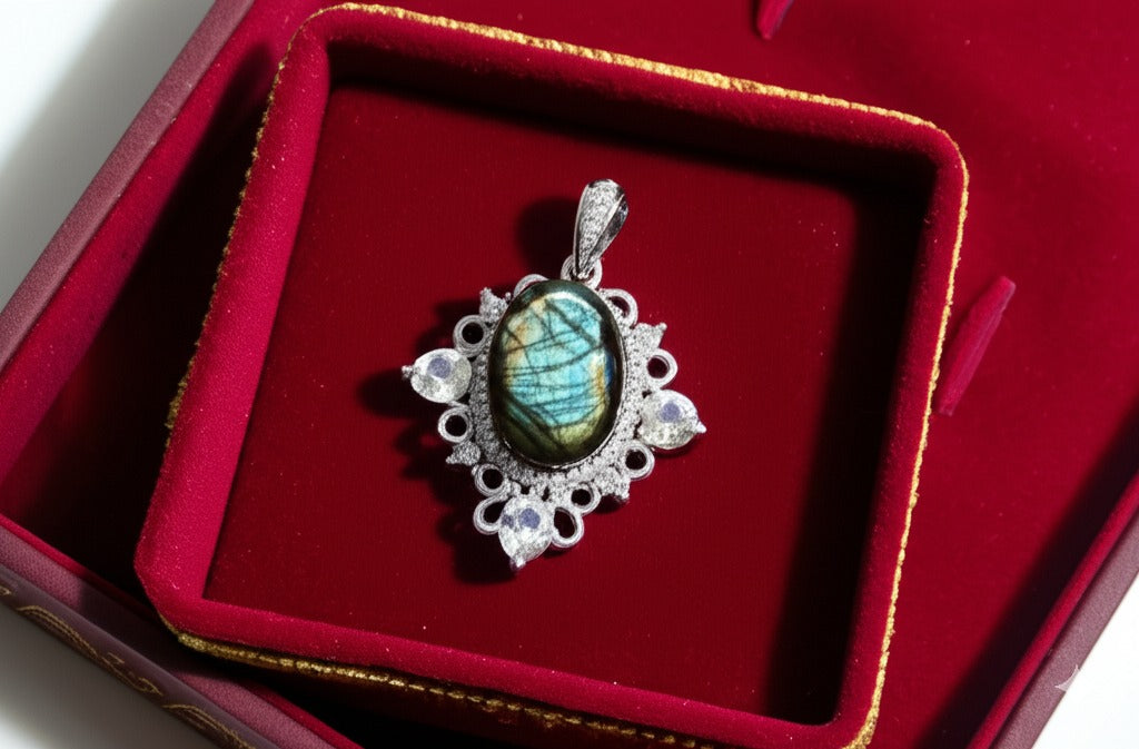 Radiant and graceful, this labradorite pendant showcase a warm blue hue that exudes positivity and elegance. Their soft glow and subtle shimmer make them a perfect accessory for both everyday wear and special occasions.