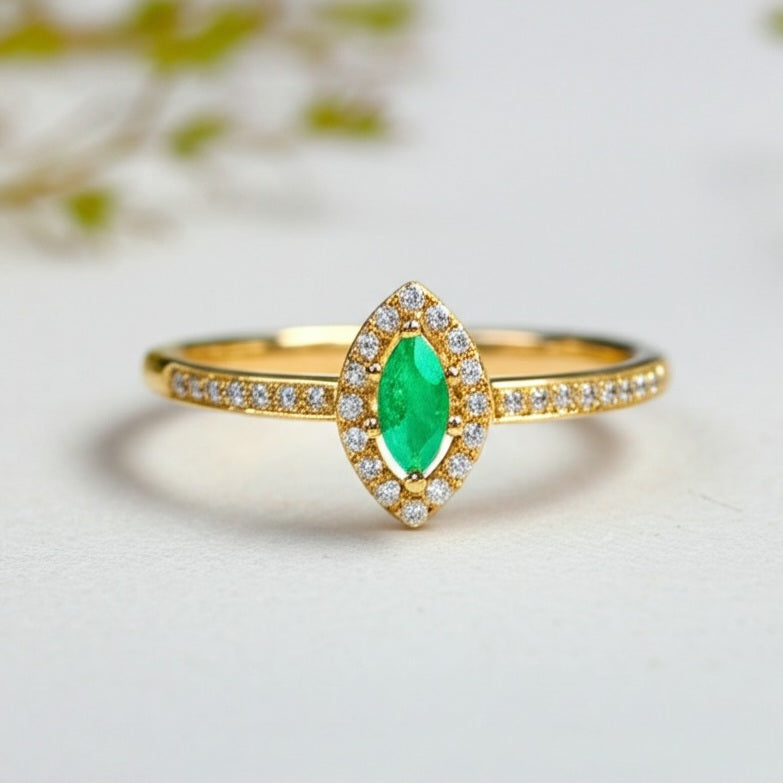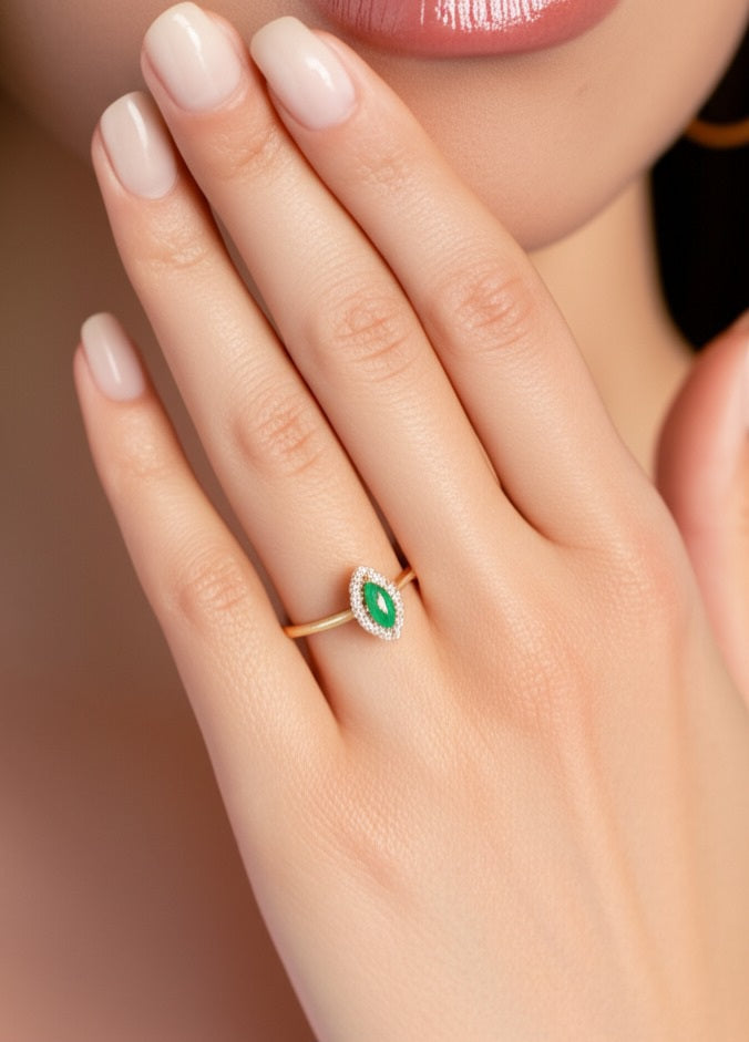 A symbol of elegance and sophistication, this women’s luxury emerald ring showcases a vivid green emerald set in premium gold. Its exquisite design and timeless appeal make it a perfect statement piece for any refined jewelry collection.