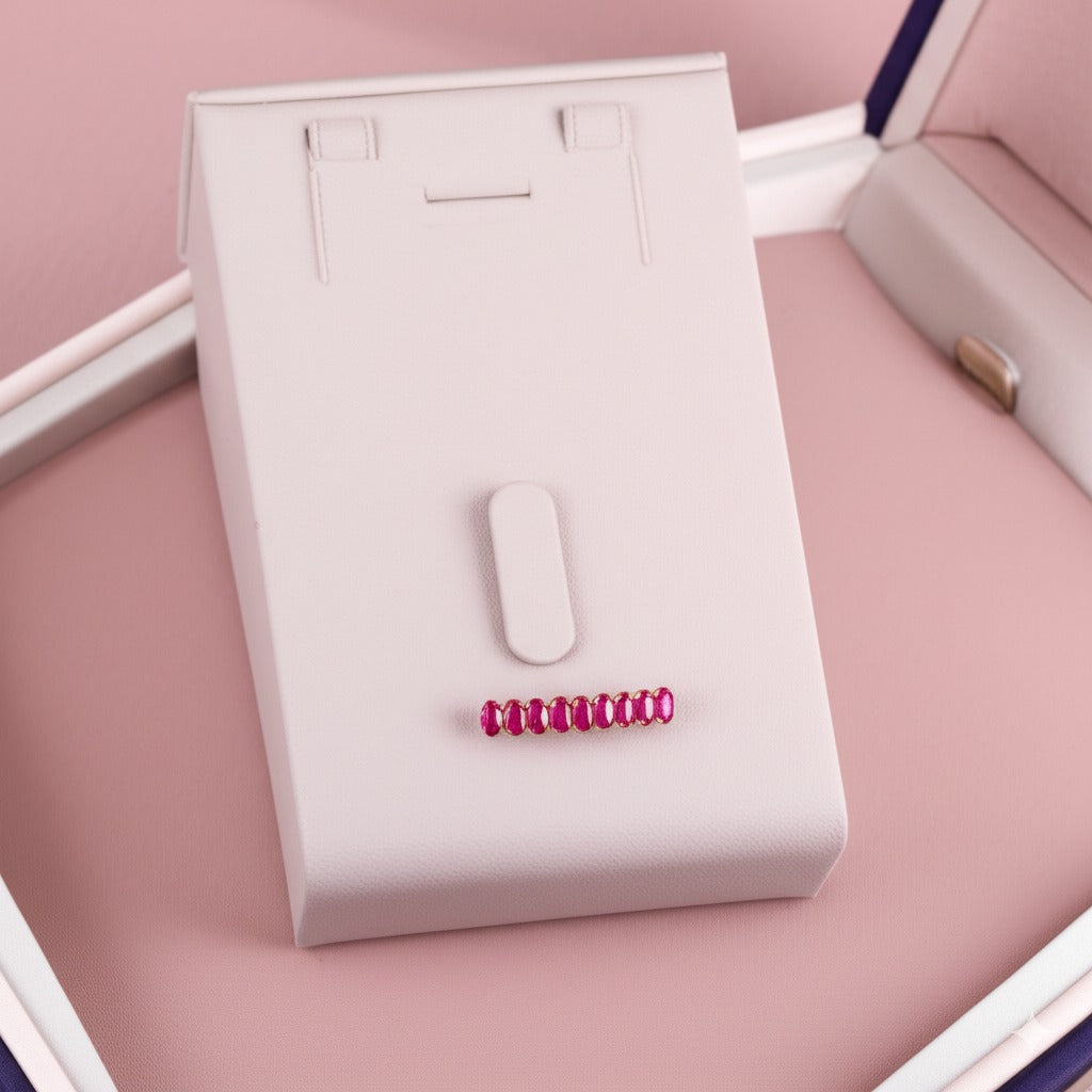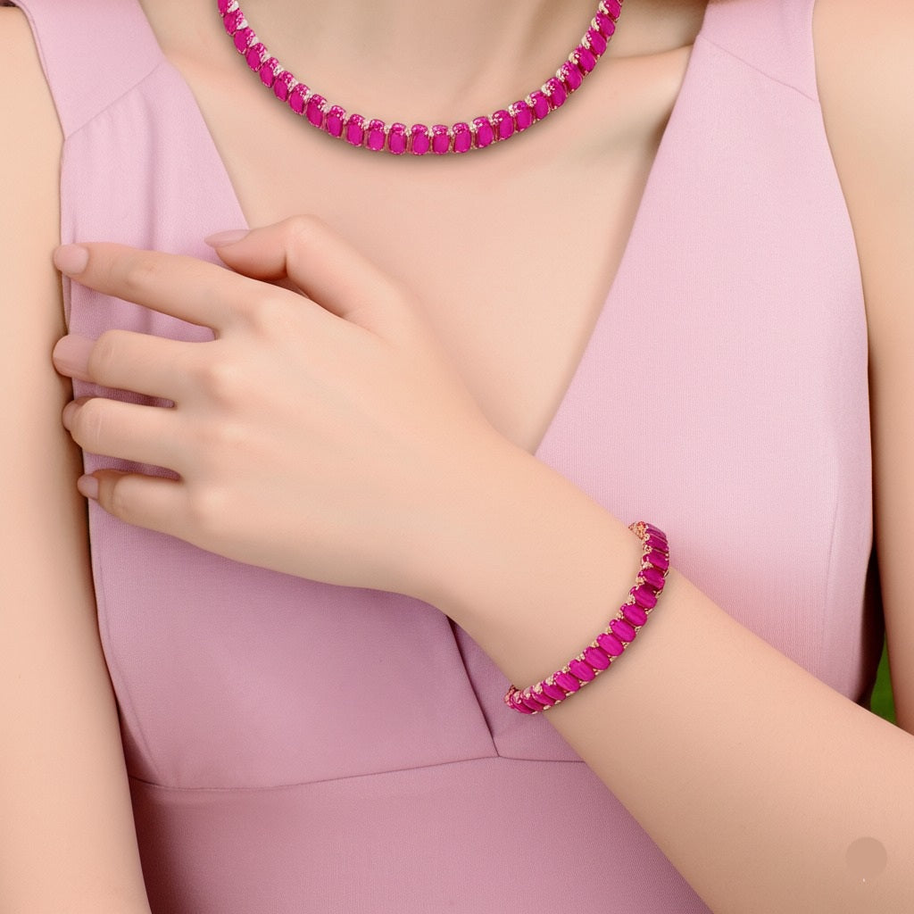 Elegant and refined, this women’s luxury bracelet features ruby paired with small brilliant rubies, set in premium gold. A striking accessory that exudes timeless sophistication.