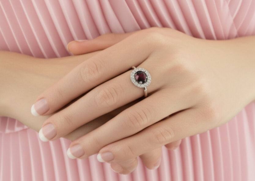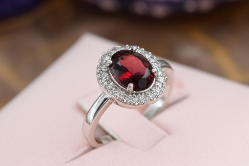 Expertly crafted for the sophisticated gentle woman, this women garnet ring boasts timeless elegance and masculine style. Made with the finest garnet, it exudes strength and confidence. Elevate your look and make a statement with this luxurious accessory.